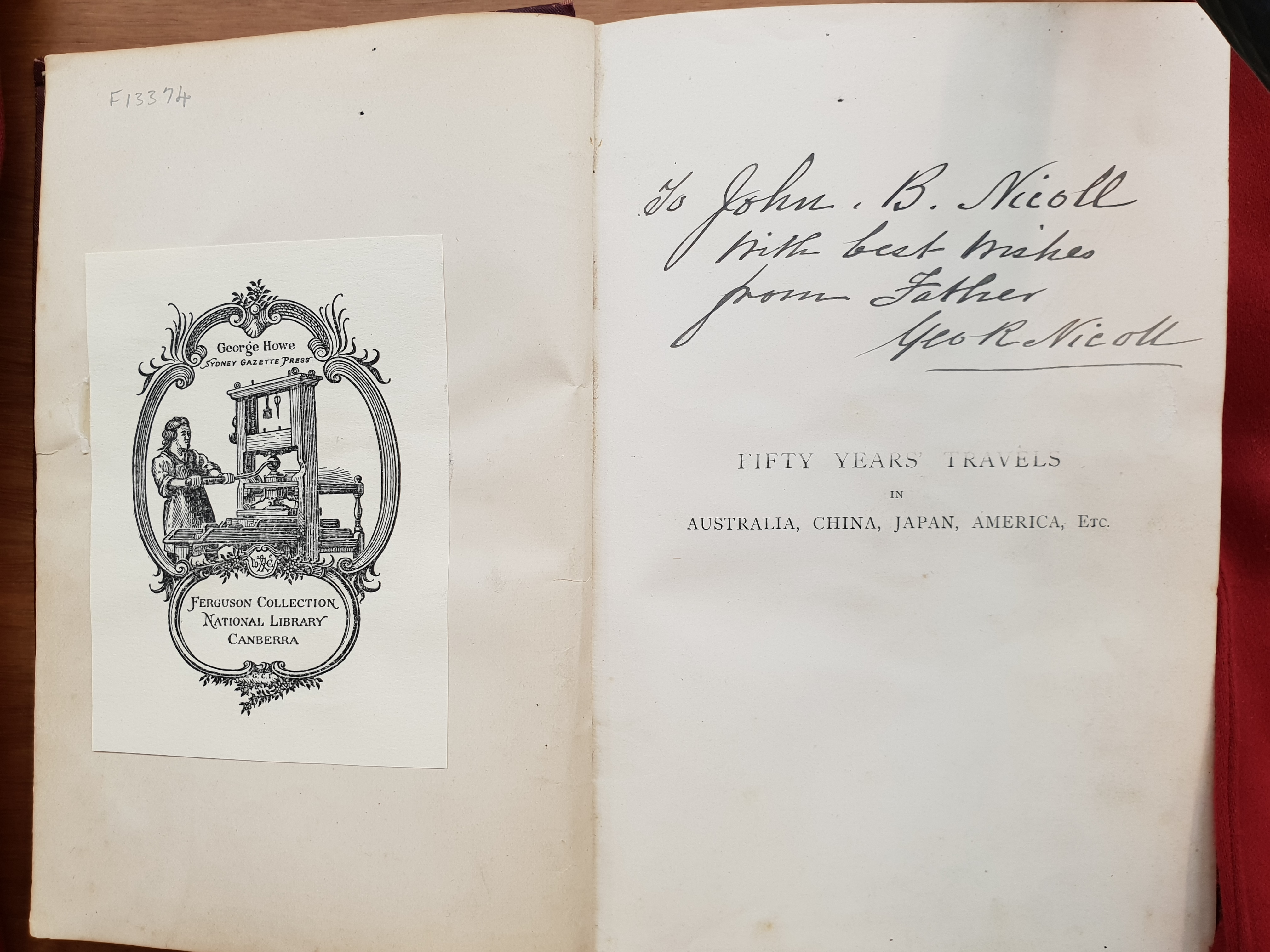There were only 25 copies of the book printed, the Mitchel Library in Sydney has one, this one at the NLA and presumably the rest are scattered around the world. My Cousin Viv in Scotland who is undertaking a proper research study of the Nicoll’s has mentioned that her family lore says that there are a couple more floating around that were dedicated to George’s Neice’s.