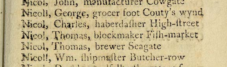 And here we are back at the Green market end, somewhere down that alley to the right of this picture which is Shore Terrace/Fish Market is Thomas Nicoll’s workshop and then James Nicoll.