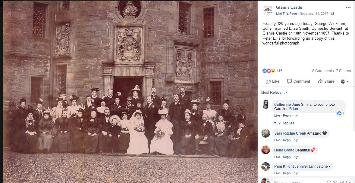 I found this wonderful picture in the Castle’s online archives of this staff wedding party in front of the castle entrance. It’s roughly 100 years after Jame’s time so imagine them in Georgian clothing instead of Victorian.