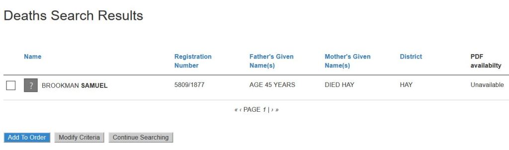 Figure 5: Courtesy of NSW Govt’ Registry of Births Deaths and Marriages