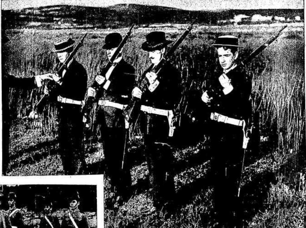 This time the article doesn’t confirm what part of the forces are depicted in this photo, the uniform does however look very similar to these ones below who’s wearer’s are identified as members of the St. George’s Rifles.