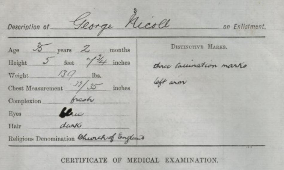 What a face, I so hope that George had some interaction with him. I can find no mention of Nicoll linked with the regiment anywhere, other than his note on his WW1 attestation papers. There is the barest of mentions about the Officers and a photo of the Non Commissioned Officers but no mention of the rank and file anywhere except in general as a group.