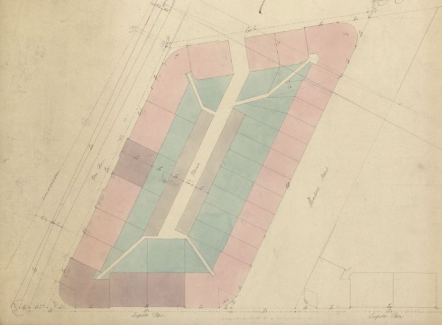 Viv also explained that when looking at the photograph, Prince’s Street runs to the left of the building. You’ll notice that if you compare the map and the photograph together, you can see the photographer was probably standing just under the “Y” in the “Yard” marked on the map to get that perspective. This is the site today, looking from the little alleyway marked on the map on the opposite side to the perspective of the photographer.