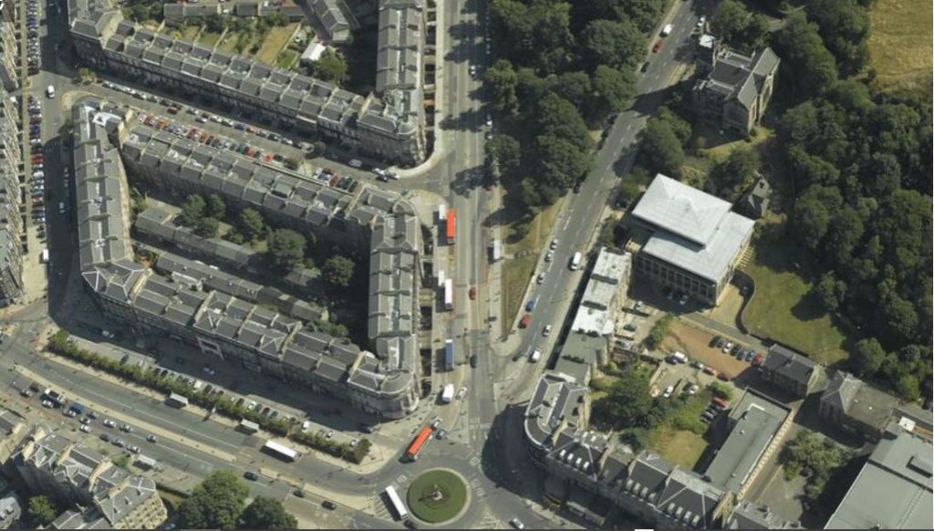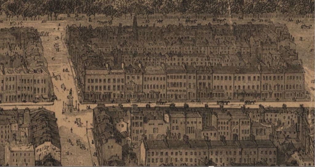 This modern view now helps us to confirm that in the 1870 view you can see the back of David’s residence at the time in Elm Row. It is the 2nd chimney to the right in the lower section of the roofline to the left of the spire and behind the curve of the tenement block facing the tower. 20 years after David’s time, but there it is, another small tear into the past.