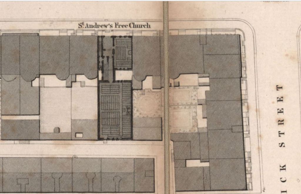 According to Wikipedia, as a result of the Great Disruption to the church in 1843, the Reverend Bruce set up the free St Andrew’s church in 80 George Street in Edinburgh. It was built wholly in the rear garden of a section of Georgian shopfront which you had to enter through to access the church. There are no photographs of the church, but the Georgian shopfront still stands, and I stumbled onto some fantastic maps of the site, one in particular, an elevated sketch of the section of George street the Georgian shop fronted onto. This might be the church David and Margaret were married in, if not they certainly had been aware of it and possibly attended. https://en.wikipedia.org/wiki/John_Bruce_(minister)