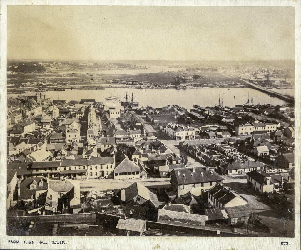 Check out this phenomenal shot below. From 1873, the Nicolls’ were in the area, just not on this wharf yet. They were on the other side of the Pyrmont bridge at the foot of Erskine Street. Francis W. Robinson took this photo. He scaled the still incomplete Clock Tower of Sydney Town Hall to capture this view from the highest point in Sydney at that time.