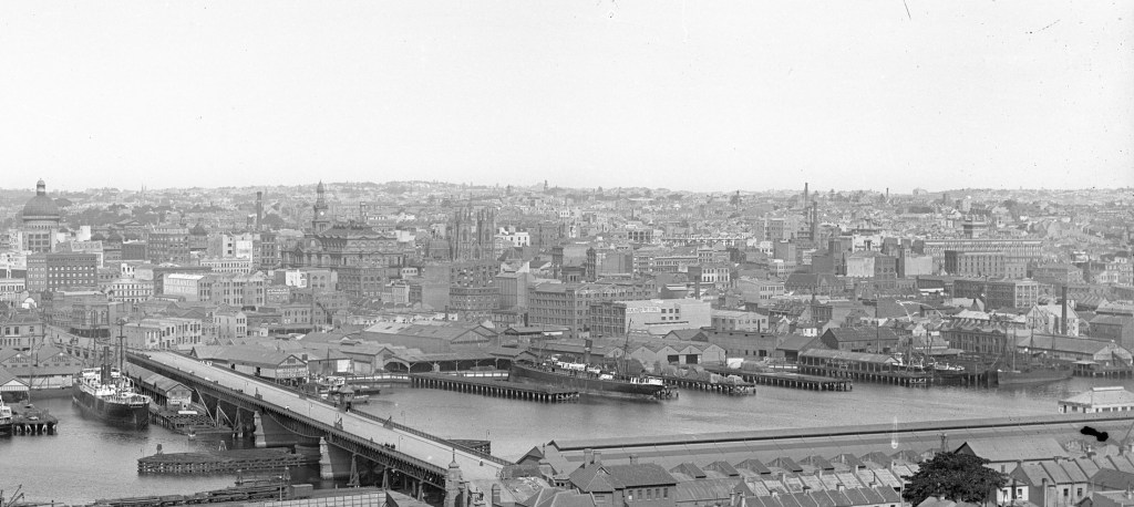 The Museum of Applied Arts and Sciences had a great shot from the Kerry Glass plate collection of the City from Pyrmont, and it just happens to capture the Pacific wharf or Nicoll wharf at that stage.