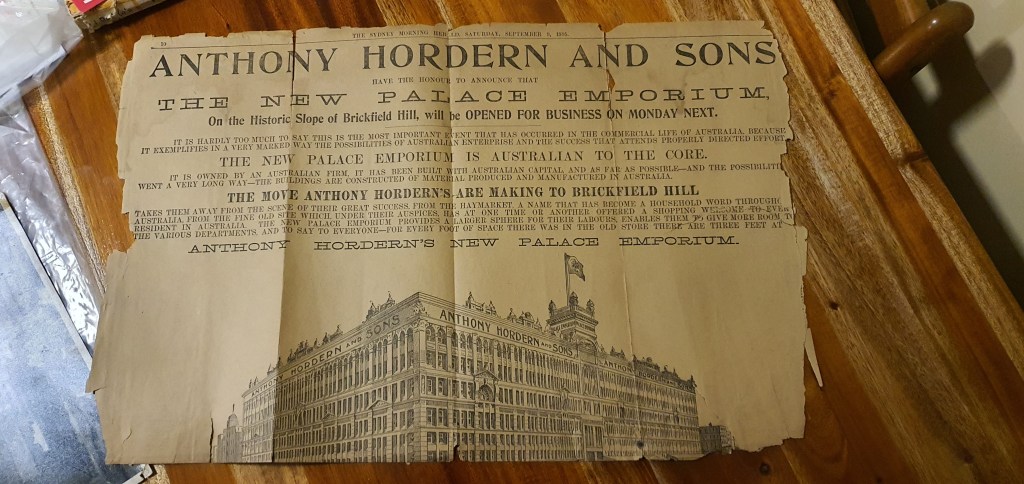 The following gallery of pictures relates to Anthony Hordern and Sons. My Grandmother started her working life there as a sales assistant in the Hosiery and Gloves section and then moved on to the Millinery department.