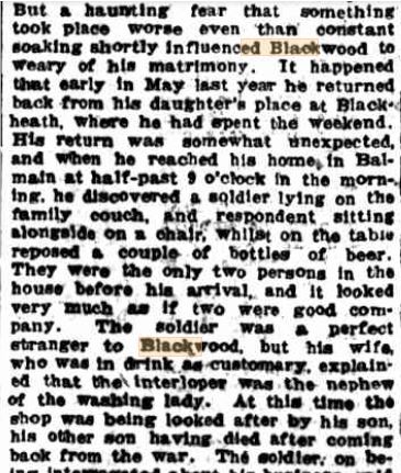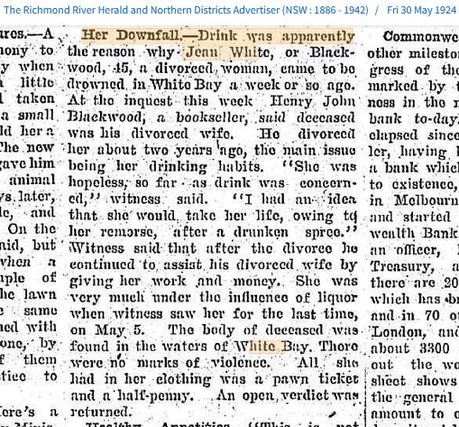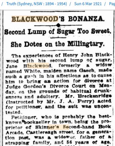 At first, I thought Jean must have been his girlfriend or fiancé. It didn’t take too long to find out that Jean was actually his Step-Mother. She was Henry John Blackwood’s second wife and the reason she is named, White and not Blackwood on the headstone? Sensationally they divorced in 1921, and I’m sure, mortifying for the time, it was splashed through the Sydney newspapers of the day.