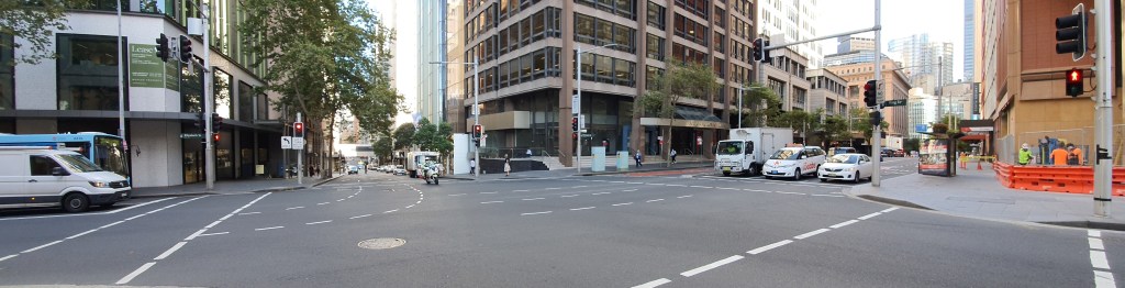 The pictures below show the intersection of King and Elizabeth Street looking west towards Darling Harbour, 117 years apart.