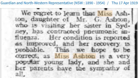 New South Wales was the first state to officially proclaim an outbreak in the last week of January 1919. Three months later Ethel is infected and battling for her life. Ethel was 29 years of age at the time which was the demographic that had the highest mortality rate. https://www.nma.gov.au/defining-moments/resources/influenza-pandemic