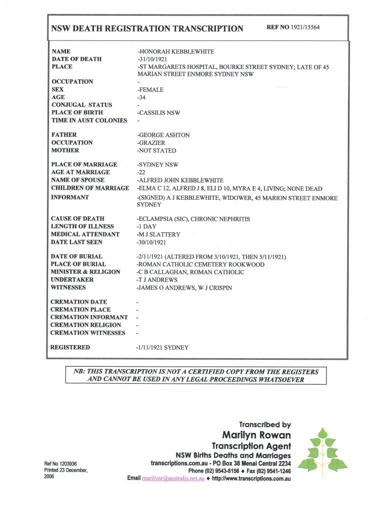 Talk about luck, I just found the article about Kathleen’s sister. It was her eldest sister, Margaret Anne Francis Anastasia Ashton. She is the sister that made the trek across Australia to Onslow, North Western Australia with her husband Timothy Byers. (Shared in the previous post)