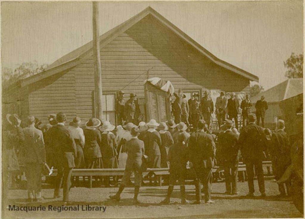 I have taken a virtual stroll up and down Merrygoen Street on Google Maps but I can’t find a building that matches the Lyceum Hall that is still standing. I did however stumble upon the Honor Roll as part of the memorial in the Lions Park on Bolaro Street. You’ll note the centerpiece of the memorial below is the Honor Roll being unveiled in the photo above.