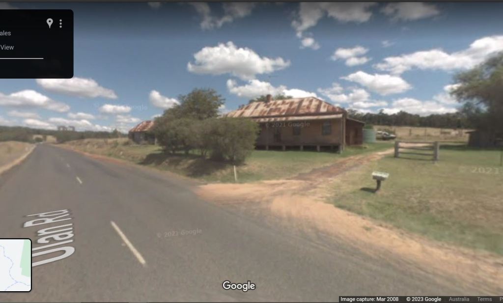 Wow, I wonder if this is what is left of the original Hotel. I mean, this building has a very distinct similarity to the picture of the hotel in Figure 9 above. This is the land at the edge of Mr Horn’s properties and George’s indicated on the map in Figure 4 with Ulan Road passing it.