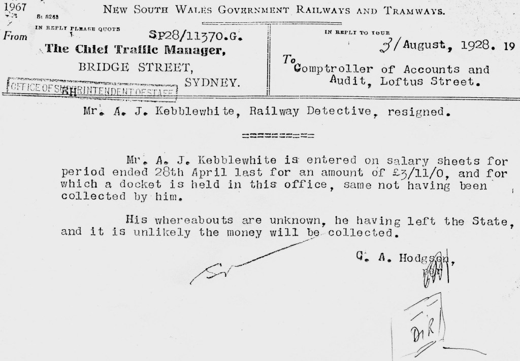 Alfred became a Detective for the Railways after leaving the police but disappears off the face of the earth in 1928. Obviously, things didn’t go so well with his 2nd wife, this note appears in the Police Gazette in May 1928.