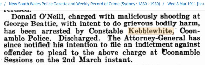 Over the next eight years, they had four children all of their births are registered in Coonamble. They must have moved there not too long after the wedding as Alma the baby Hanorah was pregnant with at the wedding, was born that same year, 1909. This is the first mention I can find of them officially in the area, dated two years later.