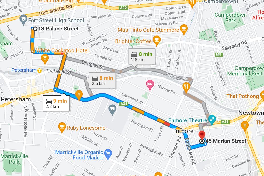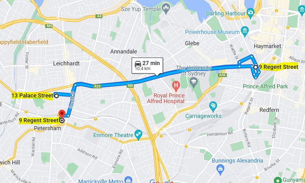 The Petersham address is only 900 meters from the orphanage and the Redfern one is about 5kms away, a 20min tram or bus ride.