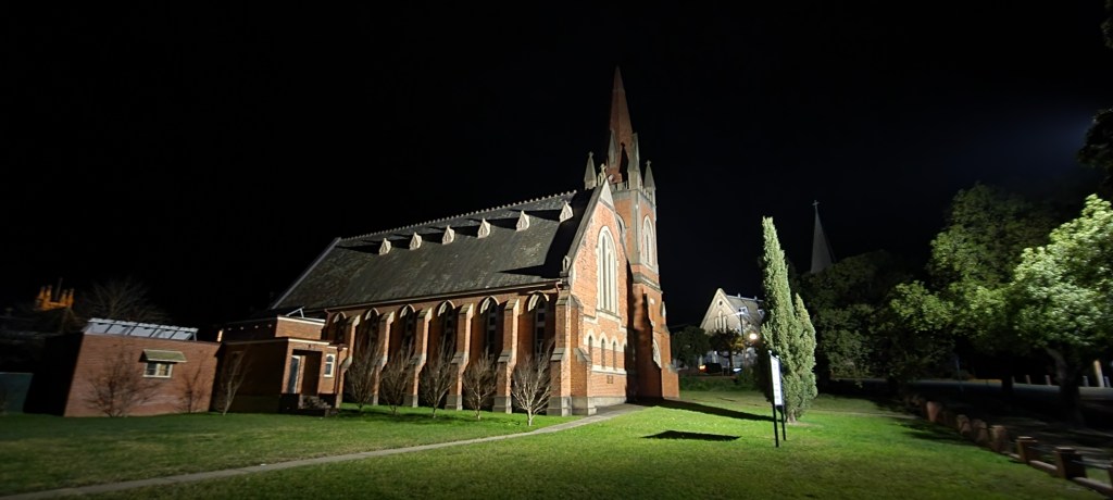 I just needed some other landmarks. Luckily for me, there was a note with the description of the photo stating that the white church-like building was St Albans Anglican Church. I went back to Google Maps and look what I was able to match it up with.