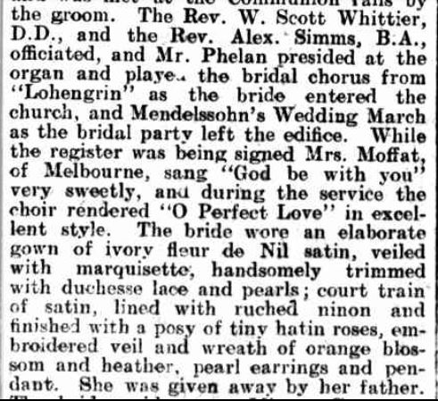 We start off with an exciting family get-together, a wedding. Jessie and Alexander’s daughter Edith Jessie. (For articles that have multiple pages displayed, such as this one below, read them from left to right and then down.)
