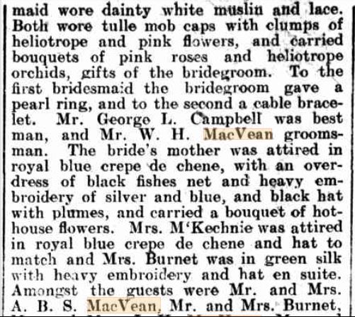 This article is such a who’s who of the family and is filled with great information on them at the time. You can see that most of Jessie and Alexander’s children are there, the only one not mentioned is David Hunter Macvean.