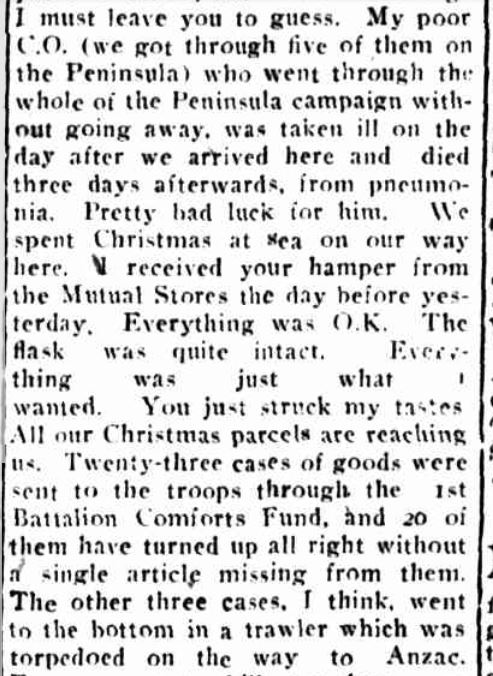 How wonderful for us that it appears that the whole letter from Jack was printed and not just a precise of its contents. I can almost hear his voice it just comes across as so informal. I love the part about so many women in the country and that if there wasn’t a restriction on letting any more in his mum might take a run at it. What is that about?