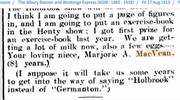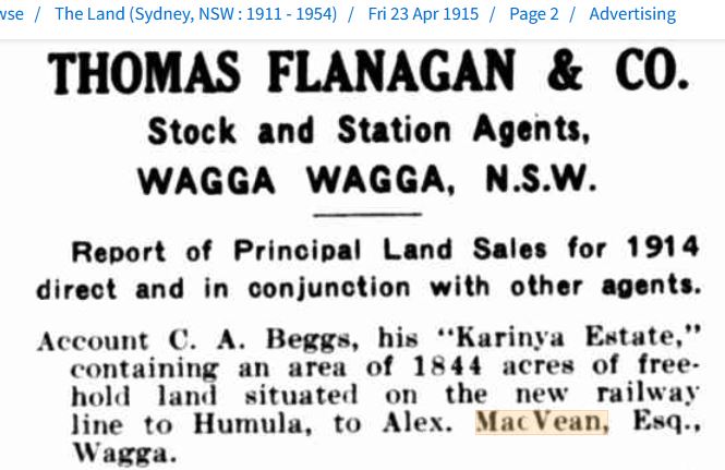 Like the photo of my Pop, this family history treasure was generously shared by a recently discovered Cousin, Tony Edwards, who we worked out, is my 3rd Cousin. Tony’s son Michael stumbled upon my blog site when he was searching for accommodation in Wagga Wagga and reached out. He and Tony have a lot of Macvean ephemera and have been so generous in sharing photos and documents with me since.
