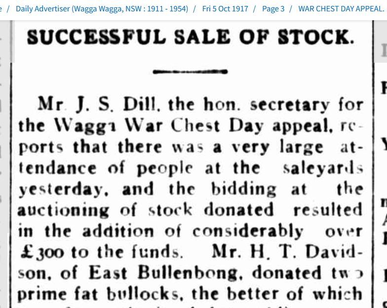 Another random find, this time in relation to the car. It comes from a review of the Wagga War Chest Day Appeal held at the Wagga Cattle Saleyards in October 1917.