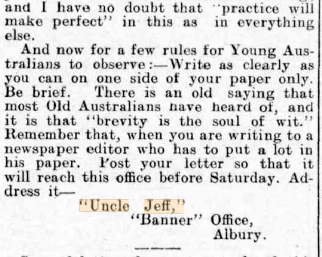 We next go back to those wonderful letters from the grandchildren to “Uncle Jeff“. It is a second letter from Aunty Marj’, although she does mention that it is her third. I can’t find the second one, so perhaps it wasn’t printed. It is interesting to read what she shares about her Uncle, William.