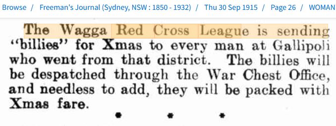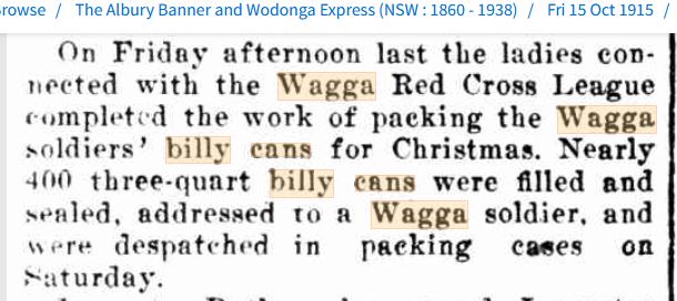 There is lots of interesting information in Jack’s letter but the issue that is of genuine interest to me is the mention of the delivery of billycans. This is something that Jessie’s organisation the Red Cross League organised.