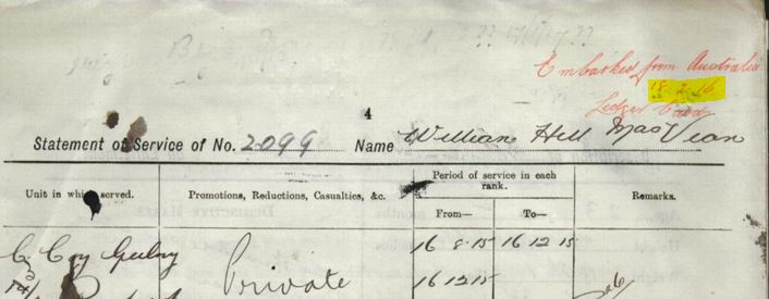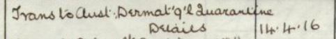 Now back to the issue of how she referred to Uncle William in her letter. I checked out his service record and I can see there might be a reason for the specific phrasing Marj used in that “…at least he is in Egypt“. She of course could be referring to the pick accident and the delay in his departure this caused but I wonder if William might have shared some details with his brother about what was really going on in relation to his health and Aunty Marj had picked up on this in an overheard discussion somewhere. I will explain what I discovered.