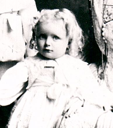 Jessie Macvean, the bridesmaid, is my great aunt, my grandfather’s sister she is 13 years old at the time. I think the first bridesmaid, Constance McKechnie, is Jessie and Alexander’s other granddaughter, who is 13 months old at the time. She is Amy Davina McKechnie nee Macvean and Leonard McKechnie’s first daughter. Ancestry.com just happened to have this wonderful photo of her, and I’m guessing at what looks about the same age.
