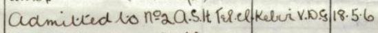 I don’t know how long he was in quarantine but the next entry on his service record states that he was admitted to the No. 2 Australian Stationary Hospital in Tel-El-Kebir. He is only there for the day.