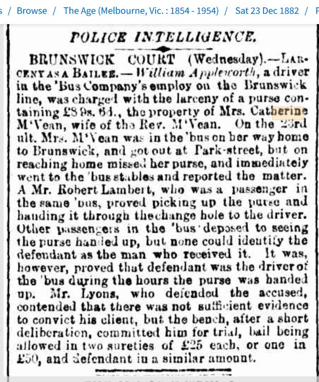 This is then it for Catherine, not one other piece of information is out there that I can find at the moment. I even checked the outcome of this court case. The bus driver was committed for trial to answer for stealing the purse in February of 1883 but there is no mention of the trial and so no other mention of Catherine.