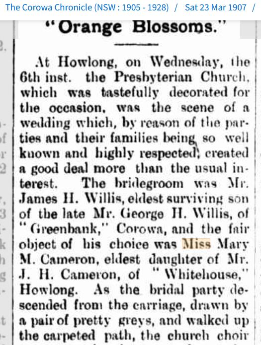 The first is attending her cousin, John Hugh Cameron’s eldest daughter’s wedding. John’s mother, Margaret Macvean is sister to Petrena’s father, Rev. Allan.