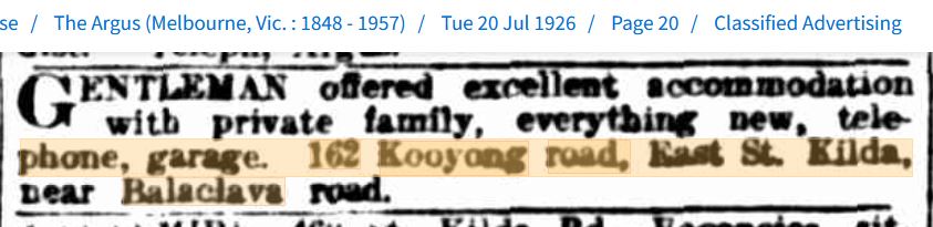 Here is 162 Kooyong Road, Caulfield, back in 2022. I’m sure that is not the house my family lived in, or if it was, it has been renovated extensively from their time.