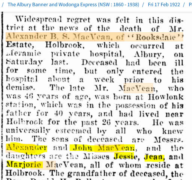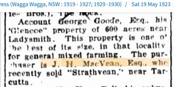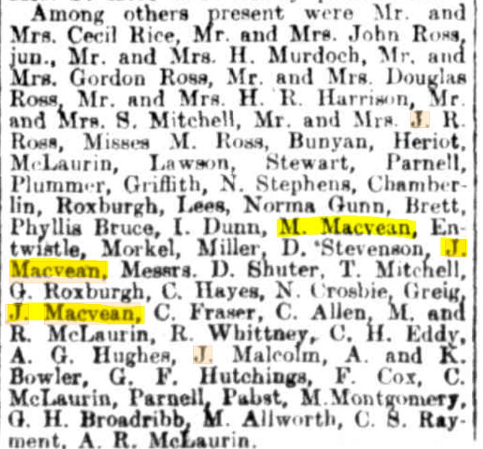 I’m fairly certain that the J H Macvean highlighted in the article below would have been referring to his uncle, another John Hugh Macvean, he is listed here with his brothers and brothers-in-law.
