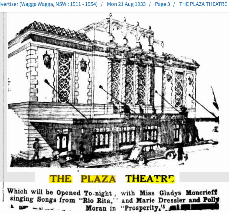 The Plaza operated for the next 46 years closing in 1978. It did open again as a theatre briefly but it also became in the mid-1980s the “Plaza Ice Place” with the “Wonderland Furniture Mart” in operation where Ivan and Mary enjoyed their wedding reception. https://www.facebook.com/lostwaggawagga
