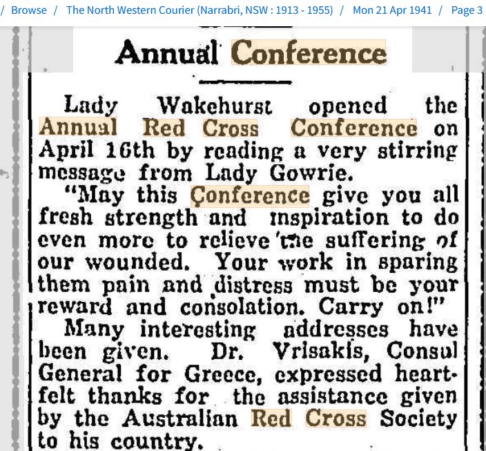 If you are interested, here is the link to the full article. It is a great read. https://trove.nla.gov.au/newspaper/article/193761214?searchTerm=%22red%20cross%20conference%22#