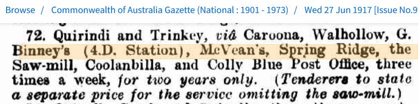 What really caught my attention now was the name, Spring Ridge. If you read my last post, “Part Three: The Macveans….”, then you will remember I shared that Spring Ridge was about 50km to the north-west of Quirindi.