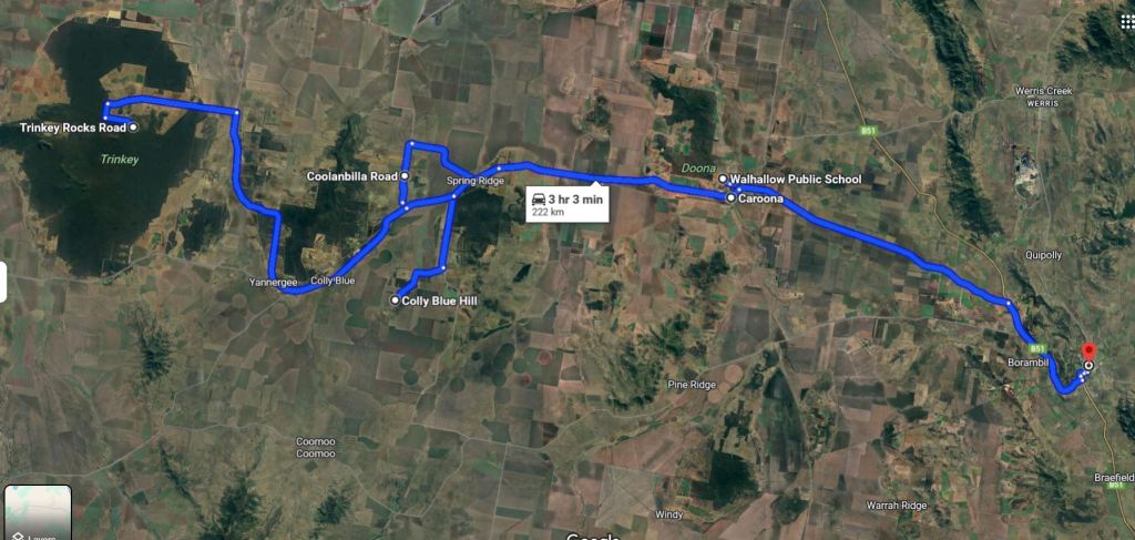 Map showing Spring Ridge to Quirindi, New South Wales, 2024