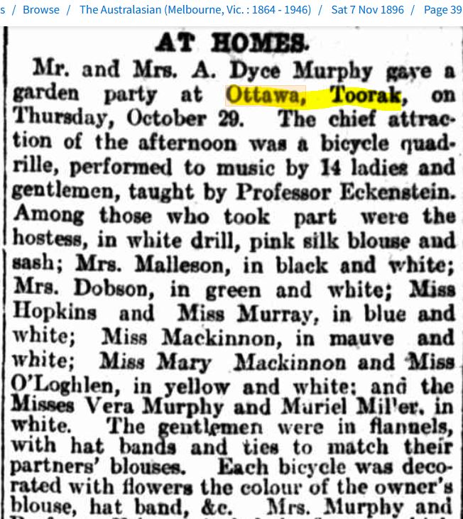 Unfortunately, there is no photograph showing Ottawa in its entirety that I can find, but I did manage to find two background views of it on Trove. The first is from 1896 and reports on Victoria’s first-ever Bicycle Gymkhana.