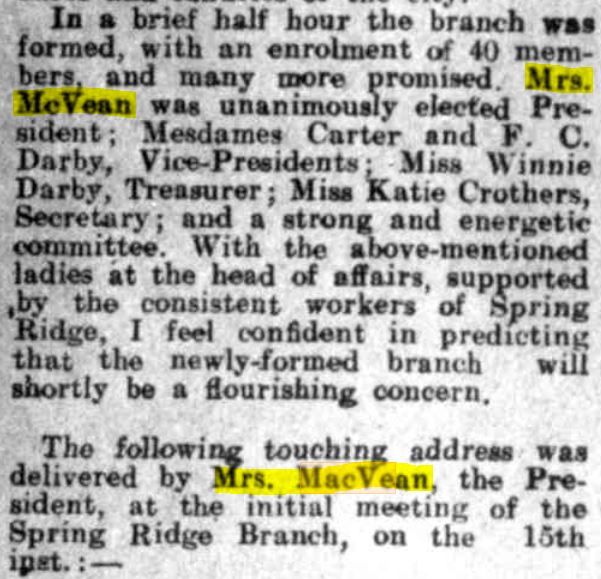 Amid all that historical gold, this article provided the clue as to why Marion was involved in the Spring Ridge community.