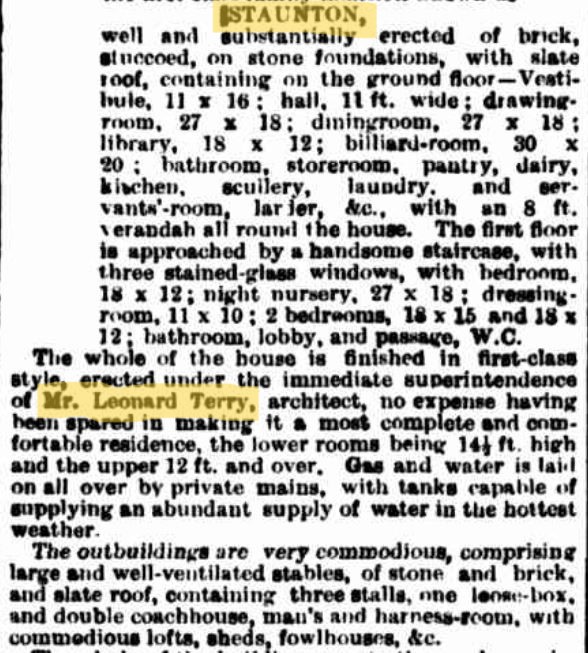 I know the article above doesn’t specifically name the house that Mr Terry is going to build, but this next article confirms that it was indeed Staunton.