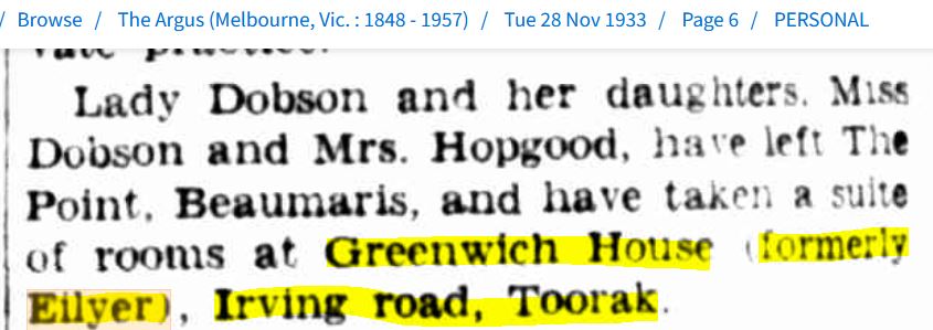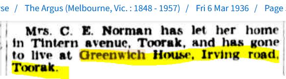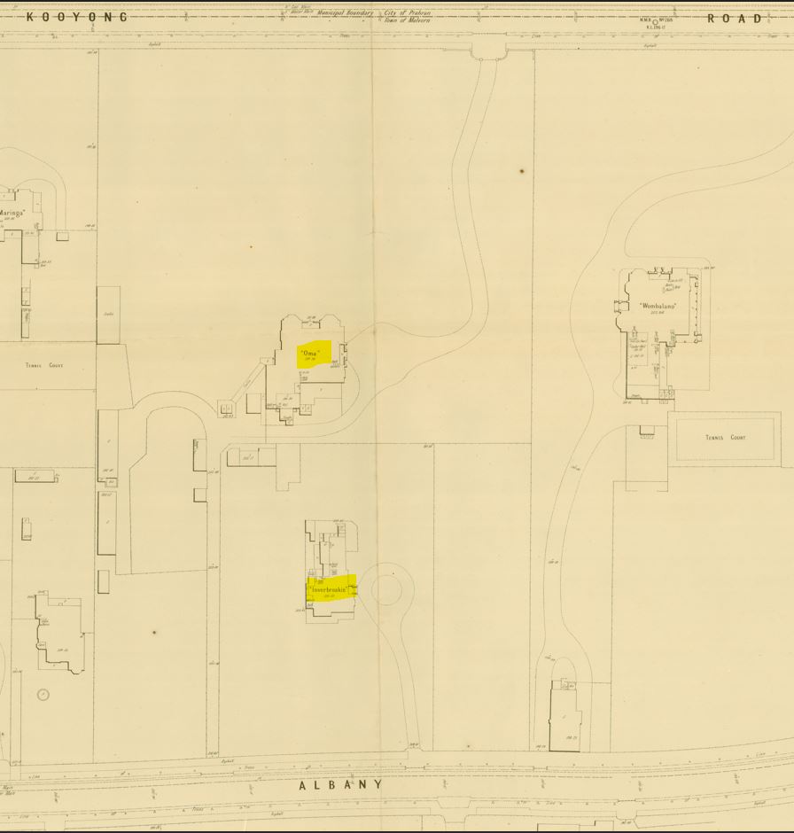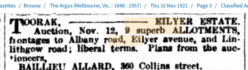 I managed to locate this original Eilyer on the Melbourne and Metropolitan Board of Works Maps. Excuse the messy job, but I had to stitch together two maps to show where Eilyer was in relation to Norla. Just over Kooyong Road and down Albany Road a bit.