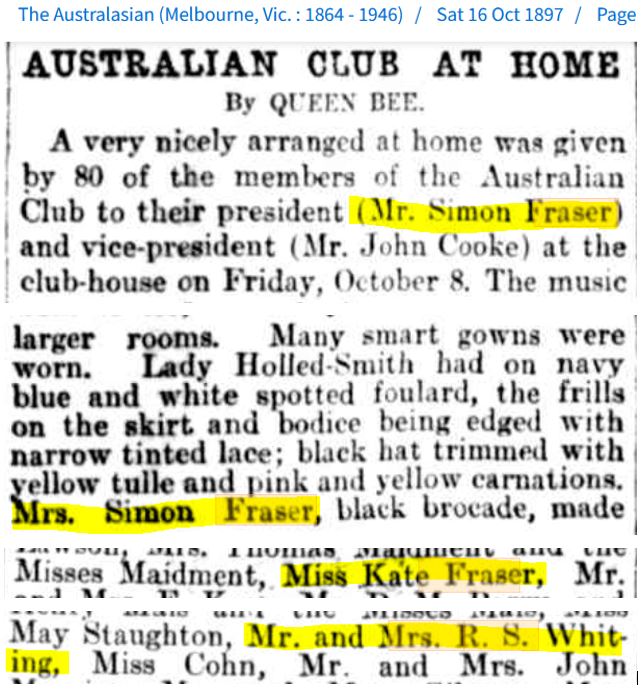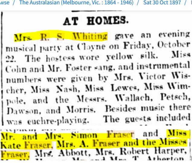 Scratch that, after completing a little more reading on the Mitchells, it may be that Marion and the Frasers might not have known them personally, but rather by reputation. The next article explains.