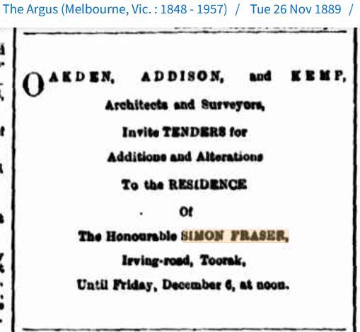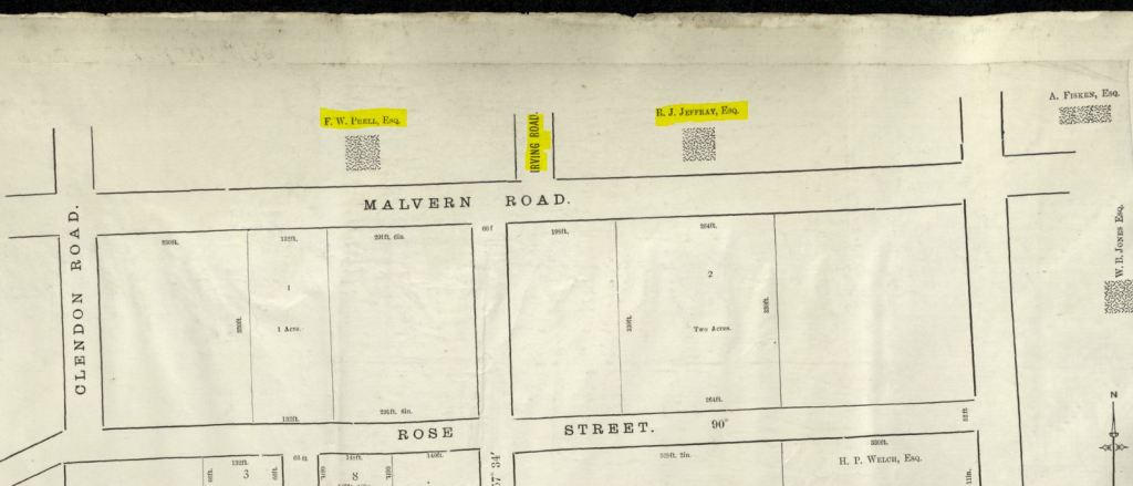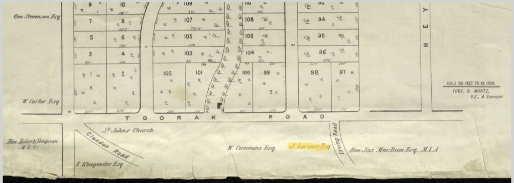 And indeed they were. I found maps showing that both men had properties on the opposite side of Irving Road to Staunton. Mr Lorimer was at one end of Irving Road on the corner of Toorak Road.