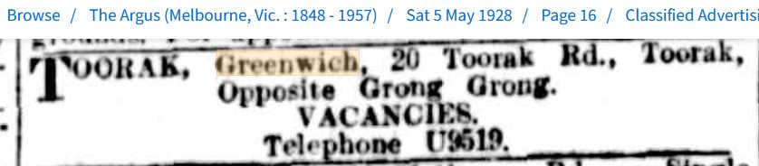 I think it must have been sometime in early 1928 that the Austins moved out and Eilyer became Greenwich House, as this ad below is the first mention of it as having vacancies, suggesting it was being rented out.