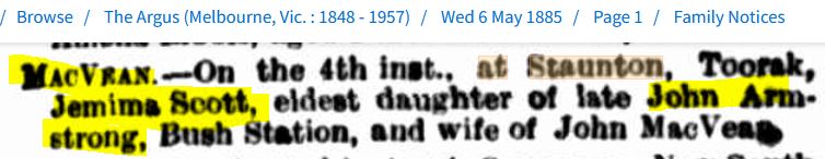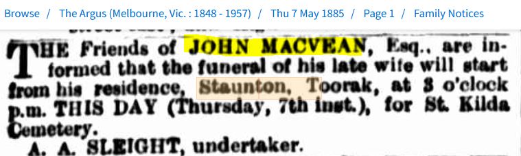 Life events were also playing out for John and his family at Staunton. John and his wife Jemima suffered this awful loss in 1877. It also happens to be our first official documentation of the Macveans in residency at Staunton.