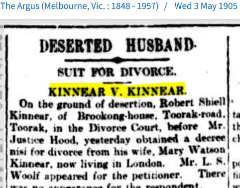 Yes, quite unusual for the time but Mary deserted Robert. There is a very interesting article in Trove that goes into the full details of the ordeal and has printed copies of the letters that Robert and Mary exchanged to each other talking about their breakup.