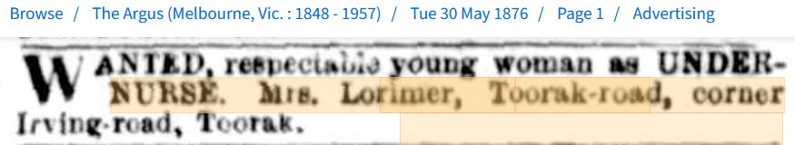 The first record of the Lorimers in residency I could find was from these adverts from 1875 and 1876.